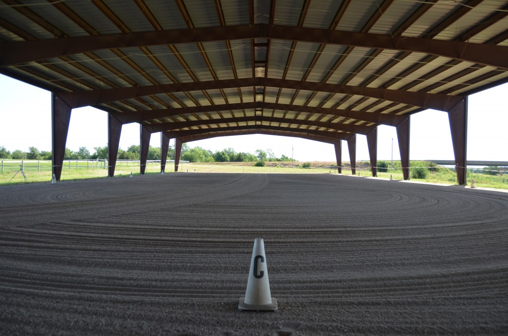 - Covered riding arena with sound system and lights